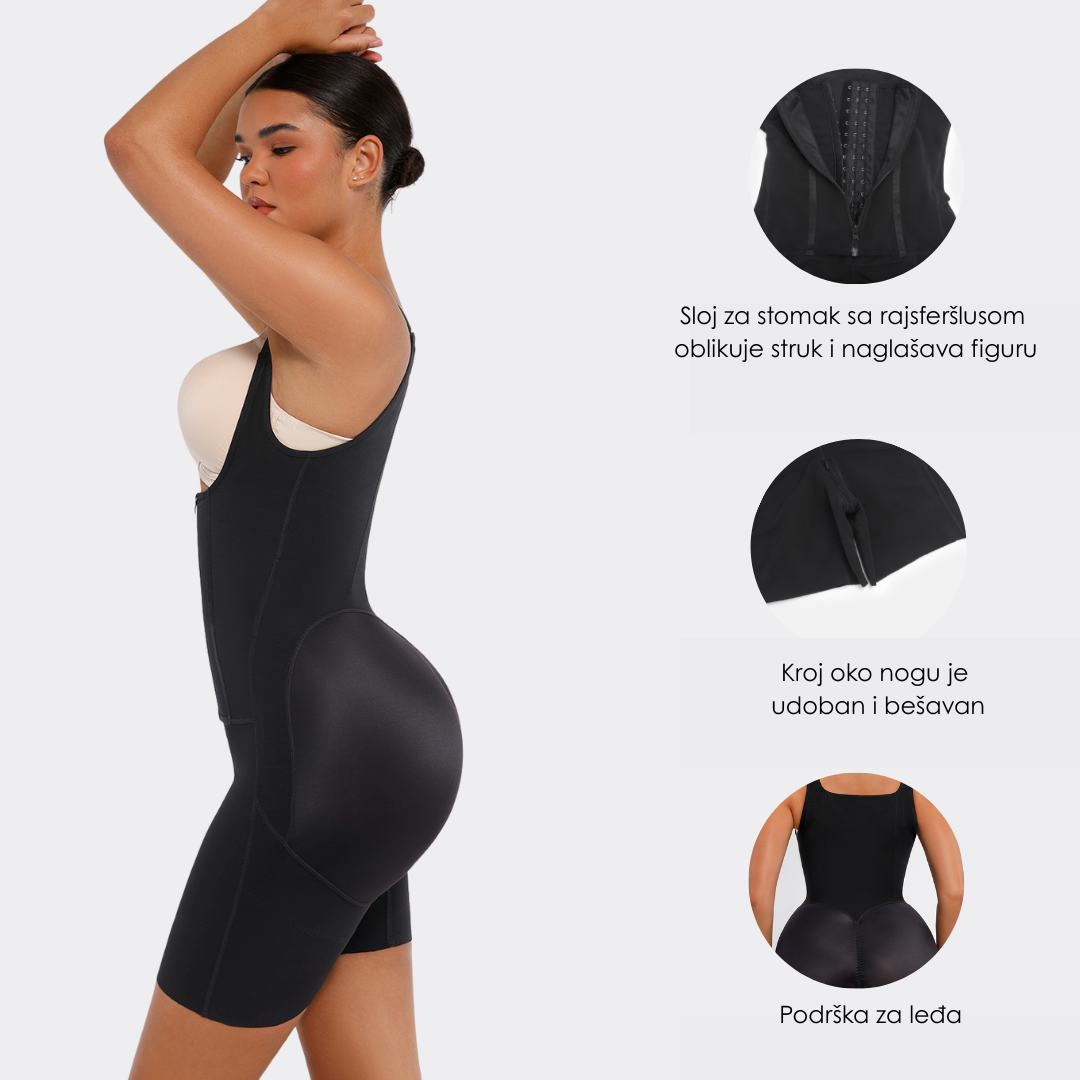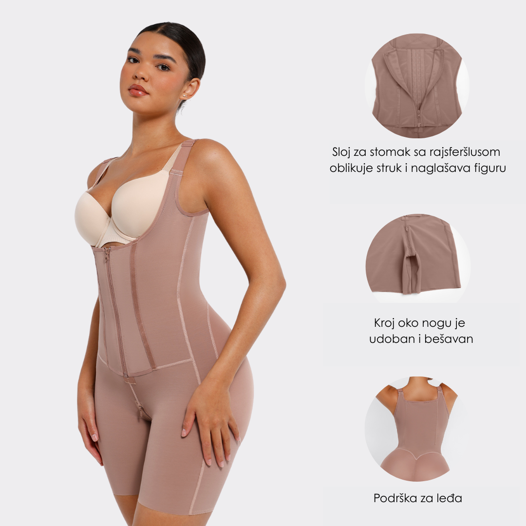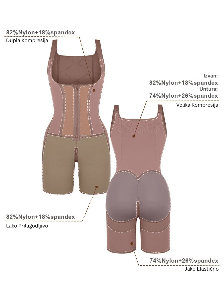 • Vanjski sloj za trbuh sa rajsferšlusom: Četiri sloja tkanine za snažnu kontrolu stomaka i struka, kreirajući idealan odnos struka i kukova.