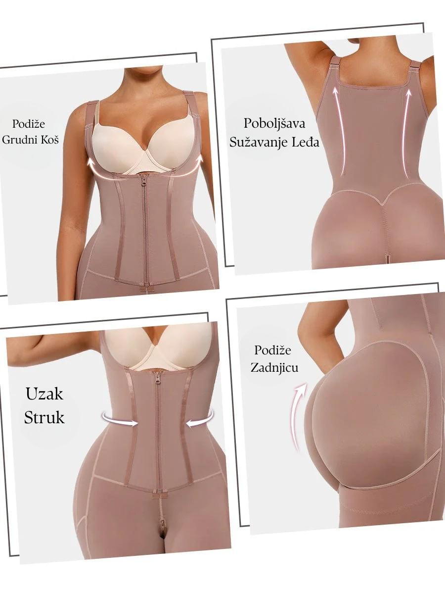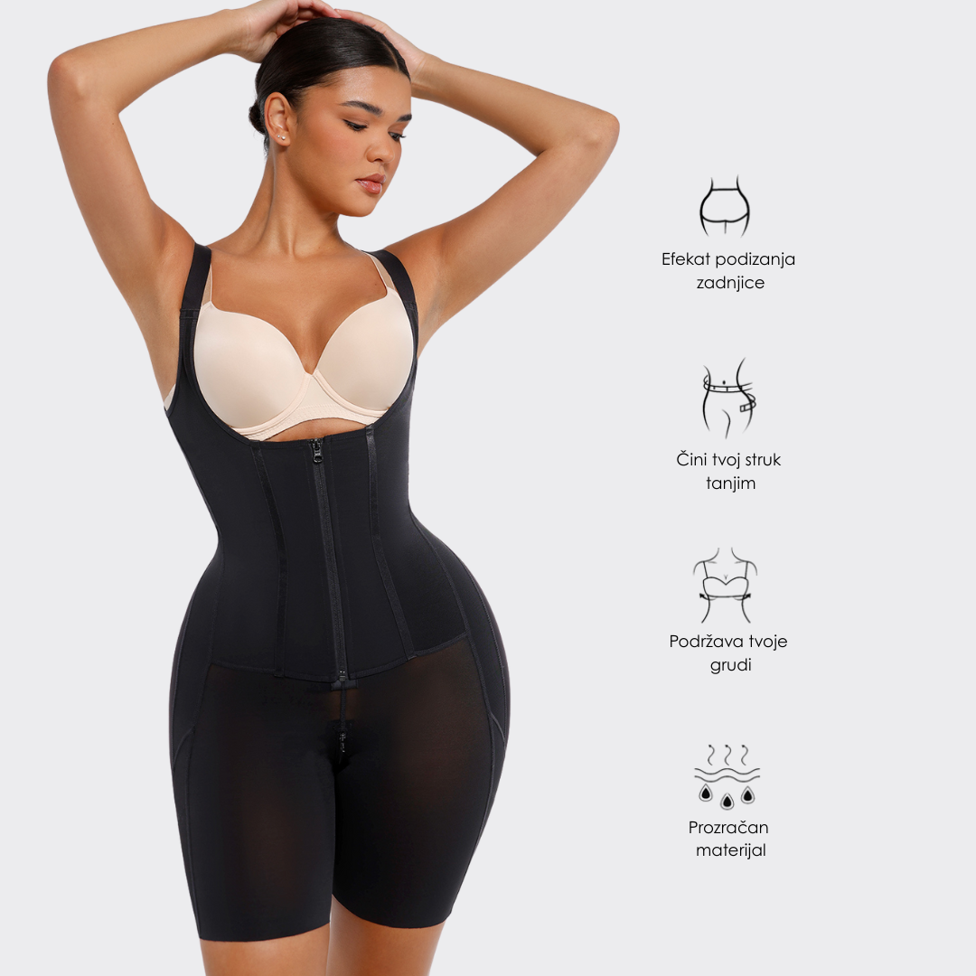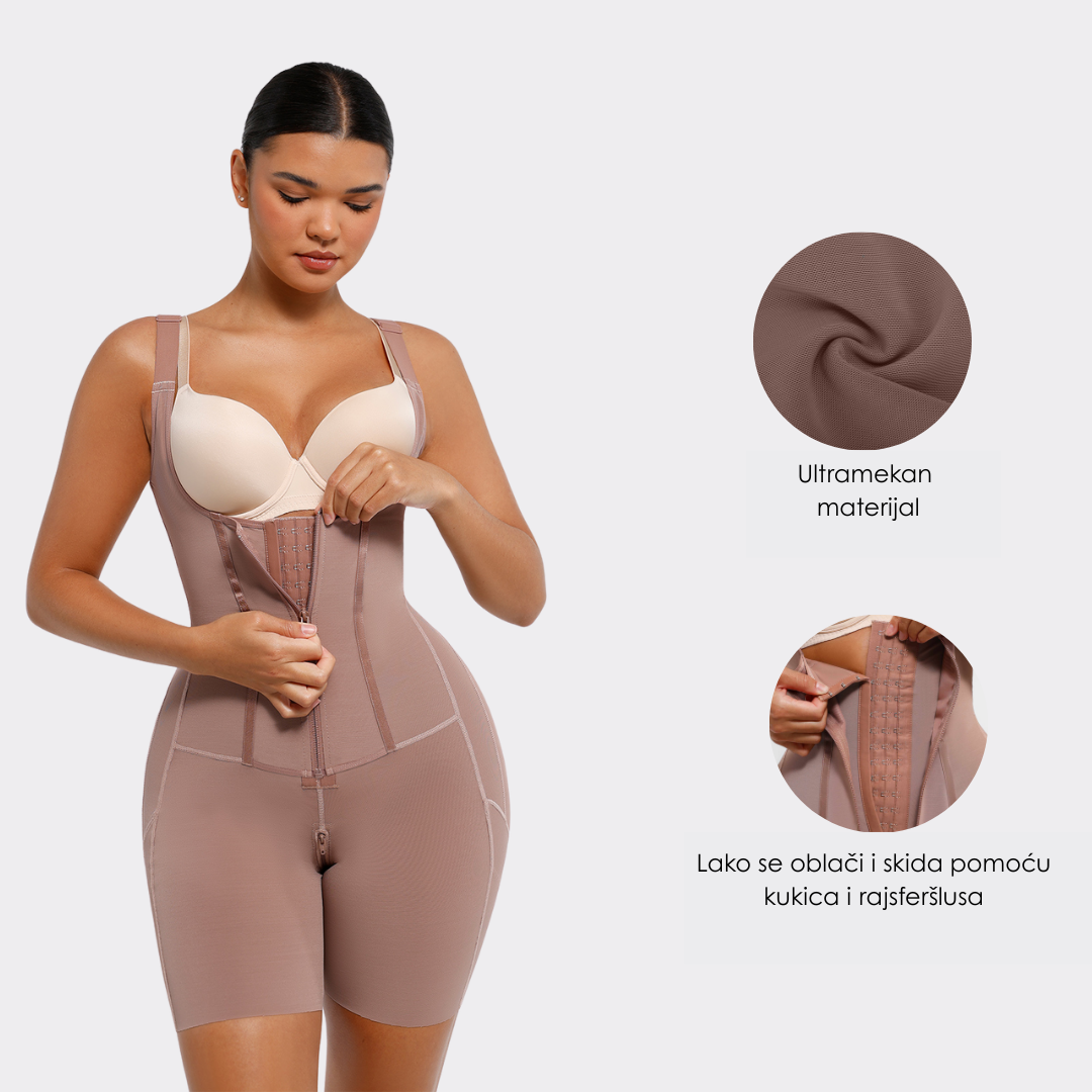 • Vanjski sloj za trbuh sa rajsferšlusom: Četiri sloja tkanine za snažnu kontrolu stomaka i struka, kreirajući idealan odnos struka i kukova.